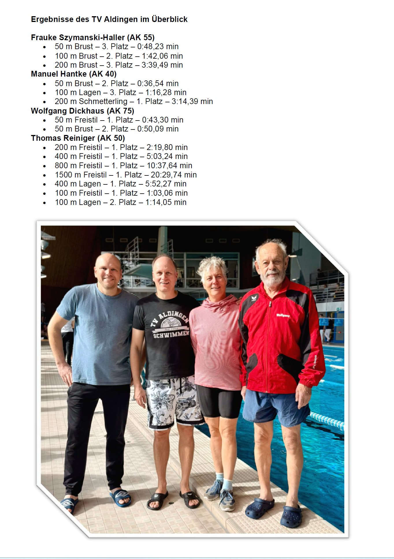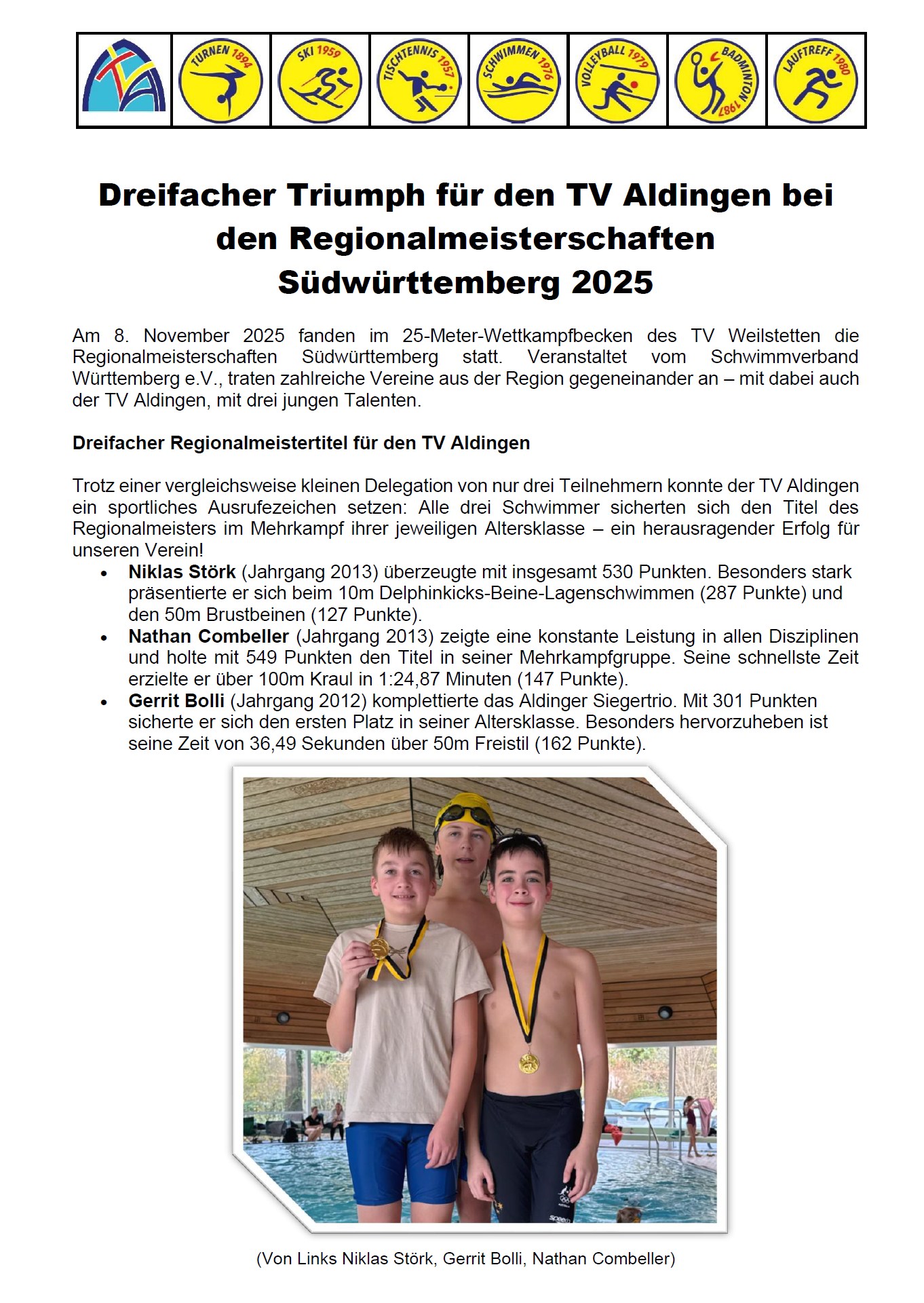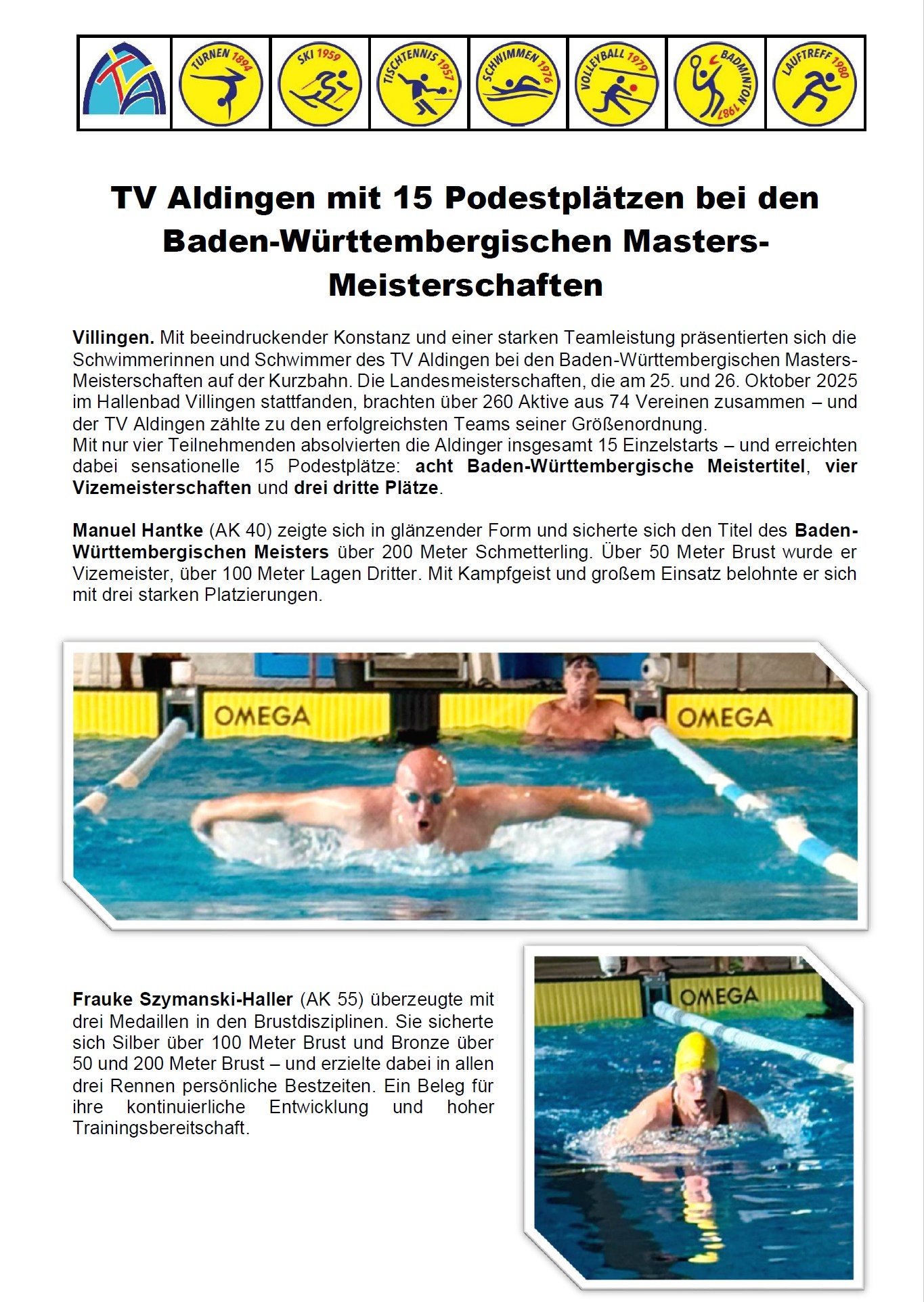 | Dezember | 15 | Ortsmeisterschaften Rücken/Schmetterling | Aldingen |